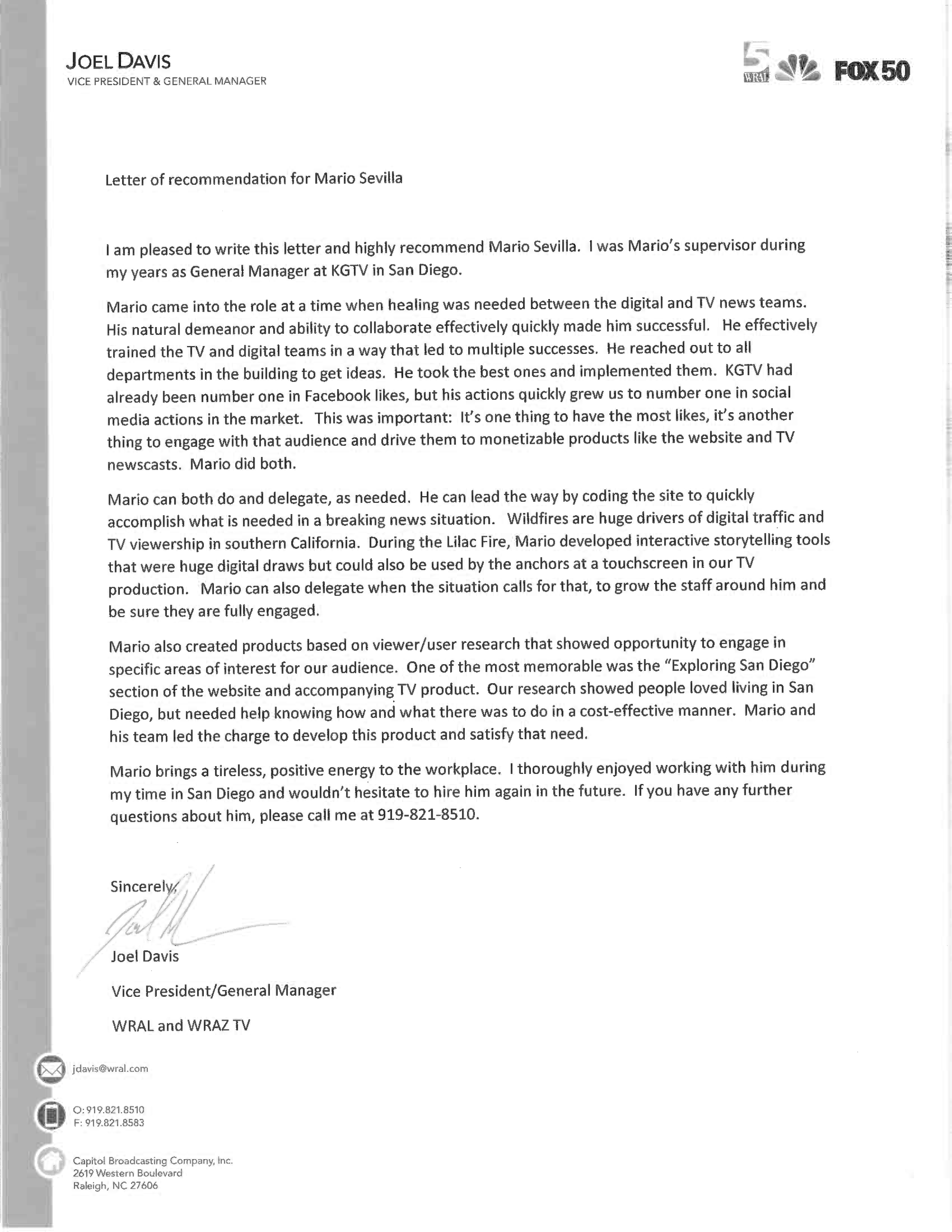Mario Sevilla served as ABC 10News Digital Director under Joel Davis