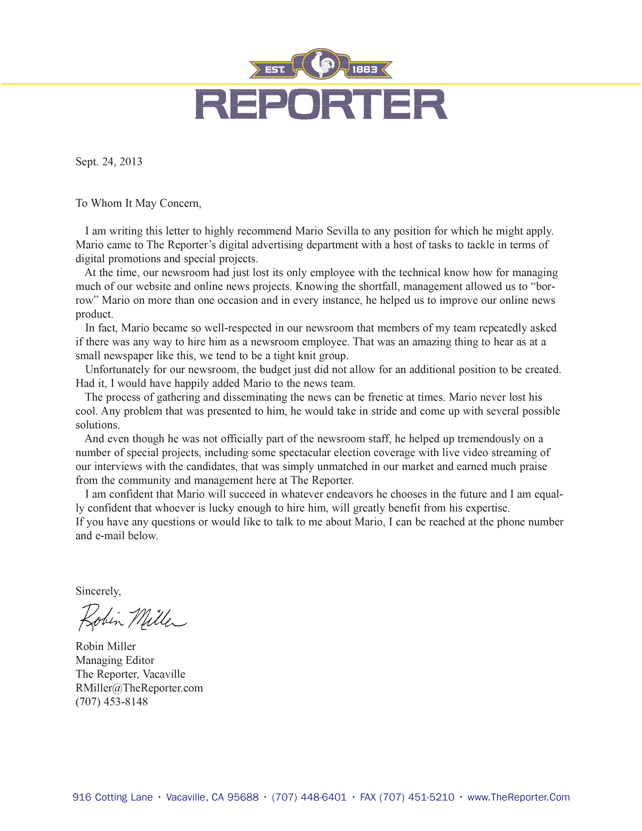 Mario Sevilla served as Digital Project Manager, NORTHERN CALIFORNIA NEWSGROUP from 2012-2013